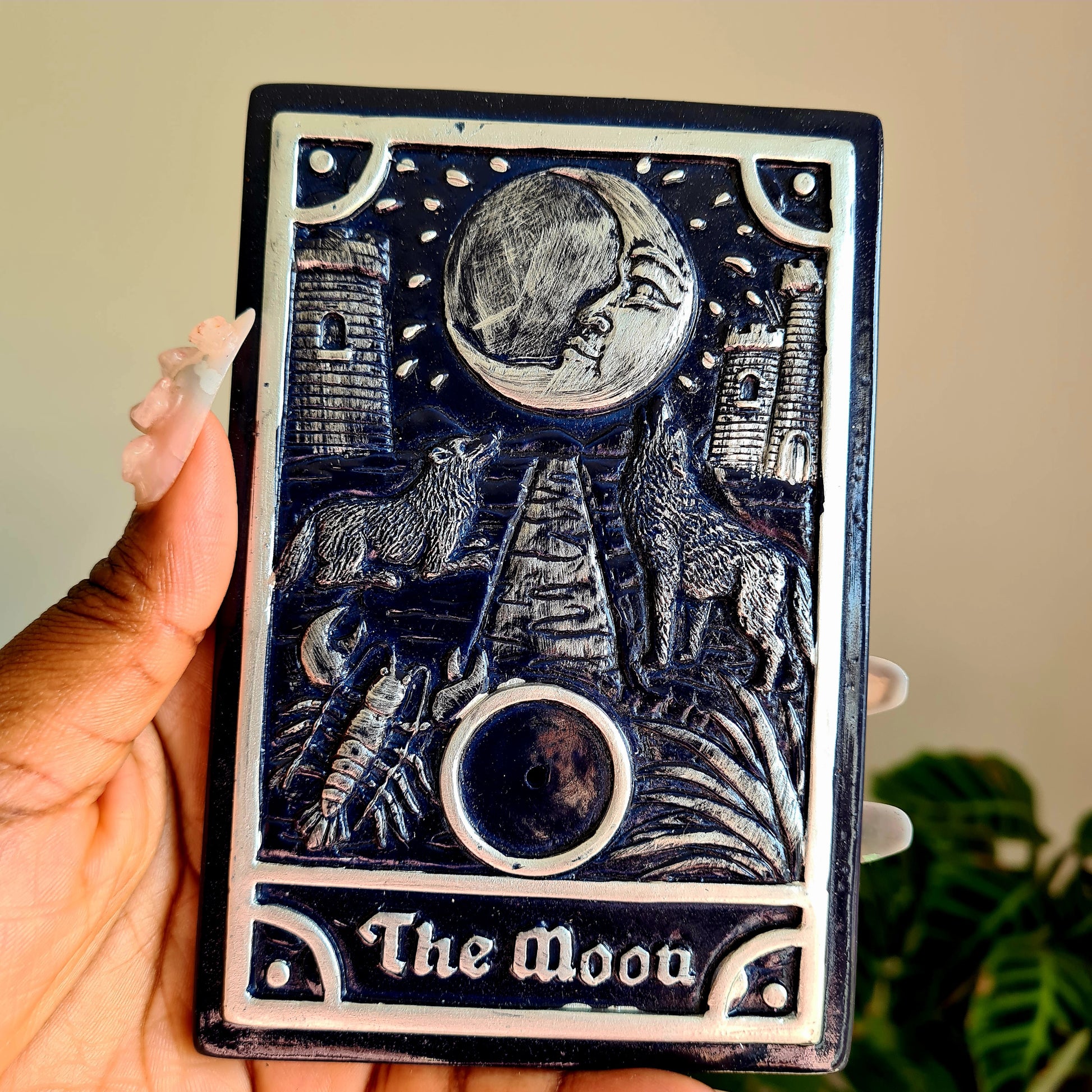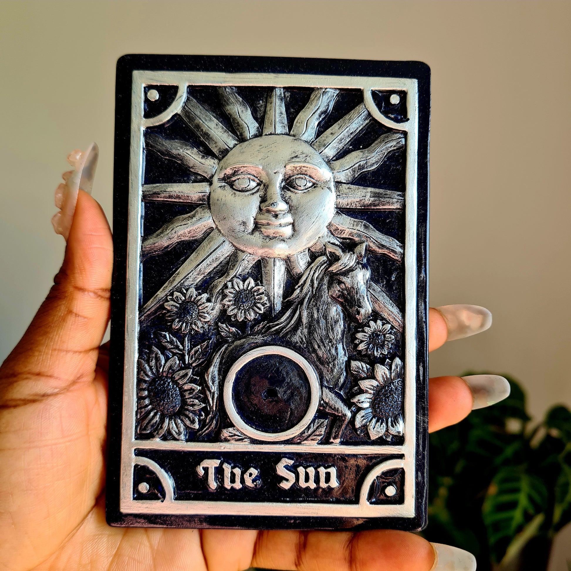 These Sun and Moon tarot card inspired incense holders each.
